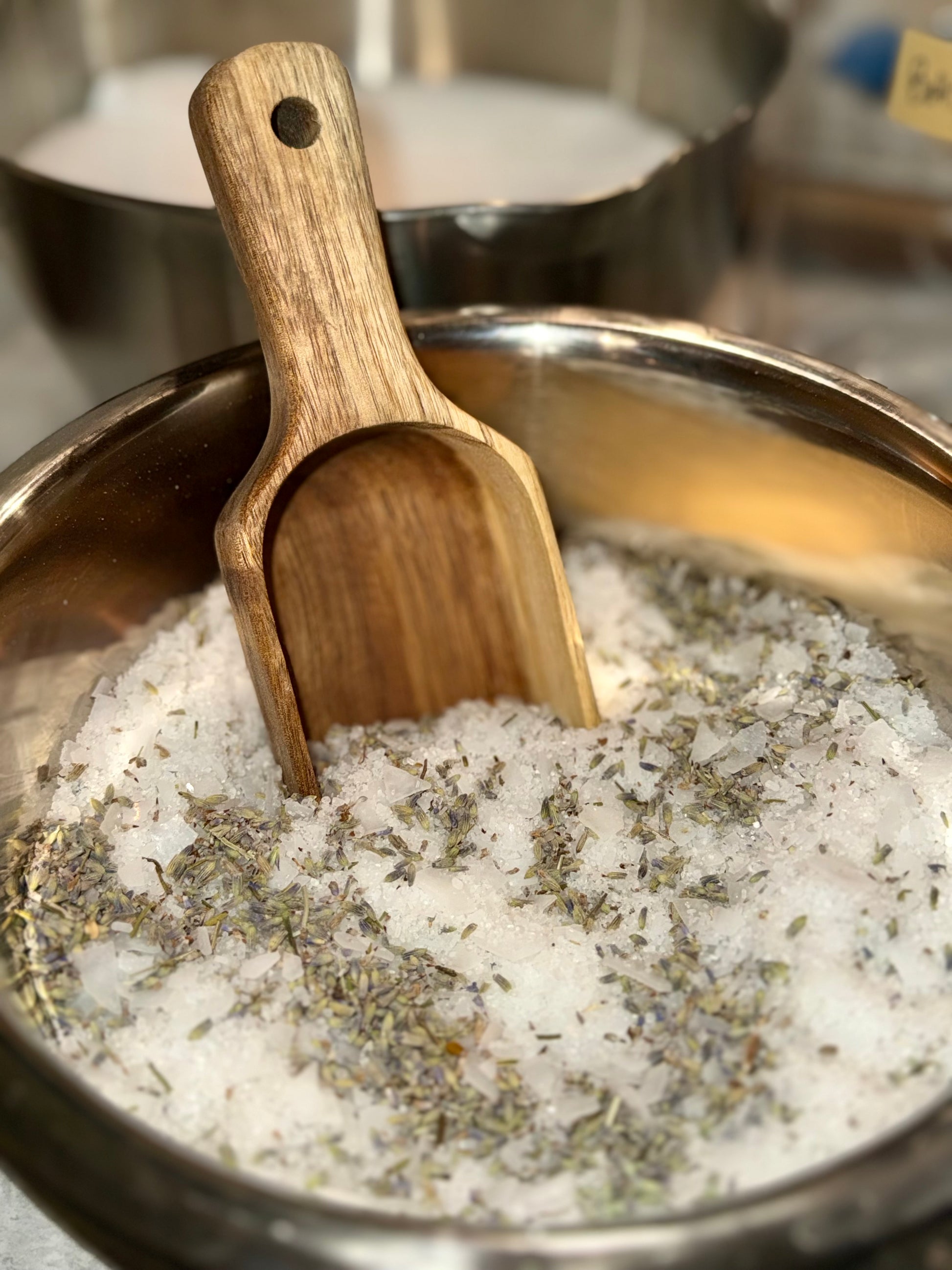 •To create a rejuvenating bath, simply fill your tub with warm water and add one cup of bath salts. Stir gently to dissolve the salts, then soak in the bath for 20 to 30 minutes. When finished, pat your skin dry to allow the minerals and botanicals to continue nourishing your skin.