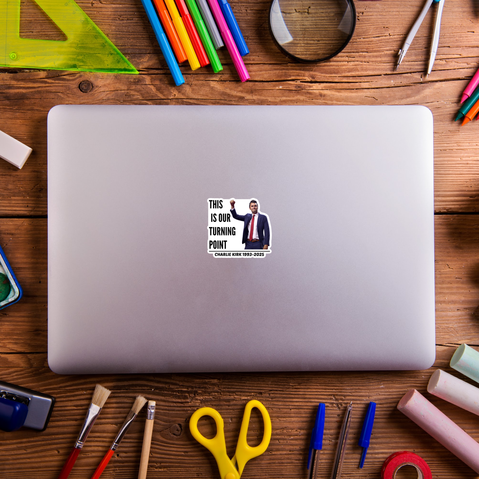 3" Be the turning point charlie kirk Great for Laptops, Phones, Computers, Tablets, mugs, tumblers, pc and more. If using on tumbler or mug, gently hand wash only. These Stickers are quality laminated, print and cut. Laminated for extra durability and lasting enjoyment. Now made with UV resistant materials to withstand your outdoor uses such as auto as well!